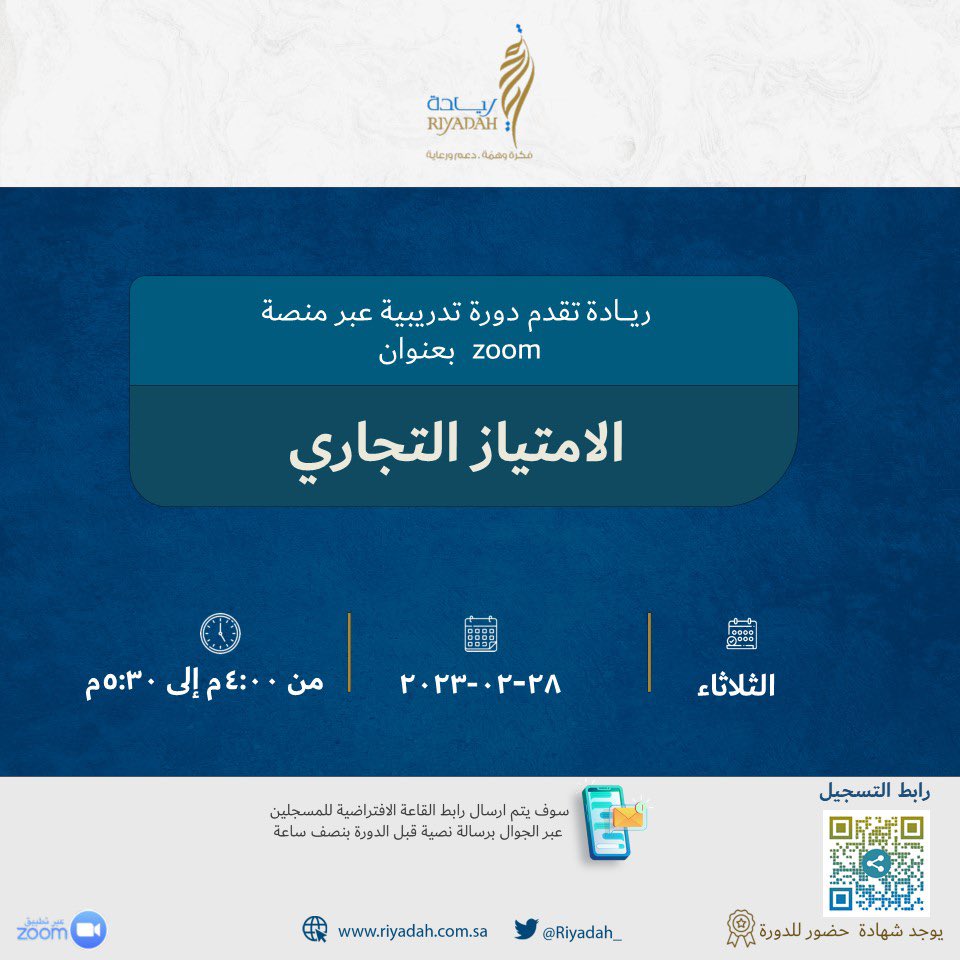 – سوف يتم إرسال رابط القاعة الافتراضية للمسجلين عبر الجوال برسالة نصية قبل الدورة بنصف ساعة.