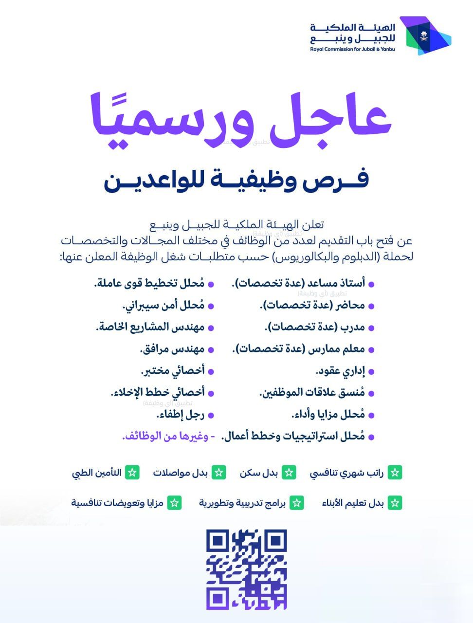 الهيئة الملكية للجبيل وينبع تعلن وظائف لحملة الدبلوم والبكالوريوس بعدة مدن